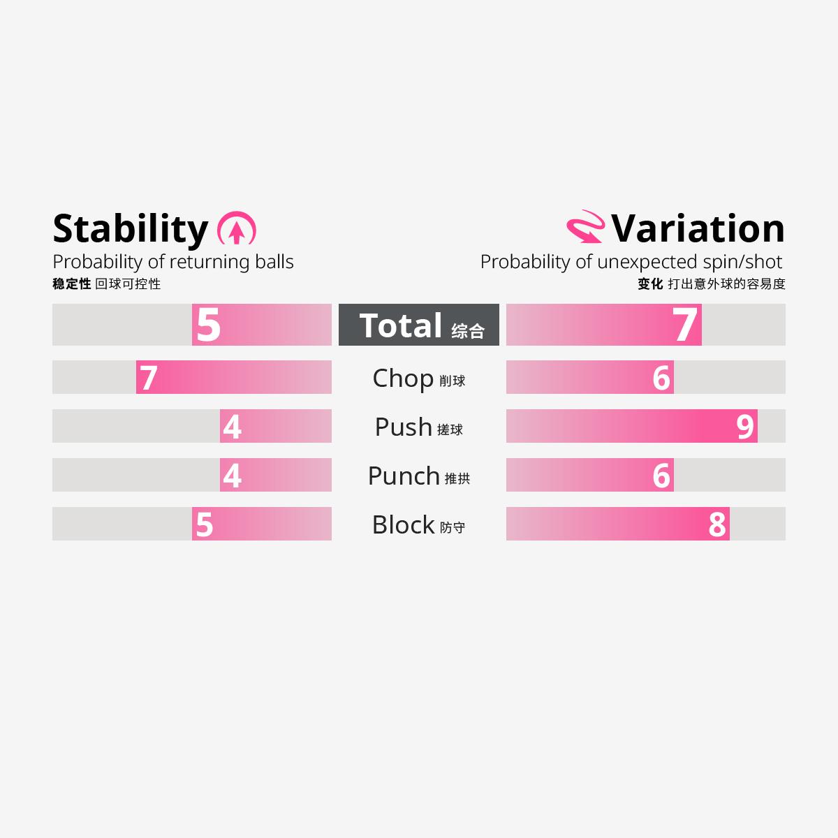 此款套胶是能抑制对方来球的旋转,并击出带有下沉的球。与反胶一起使用可通过旋转变化来扰乱对手。