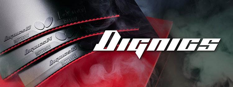 指引更高水准技巧的 DIGNICS。它的核心是采用了比 Spring Sponge 具有更好弹性,且经过进化的 Spring Sponge X,和重视吃球性能,且强化了表面损耗耐久性的独自研发的胶皮相结合。采用了具有超快速性能特长的开发编号为 No. 64 的 DIGNICS 64,推荐给以快速弧圈及中远台相持对拉,发力等,都重视利用速度追求更高水准进攻威力的选手使用。