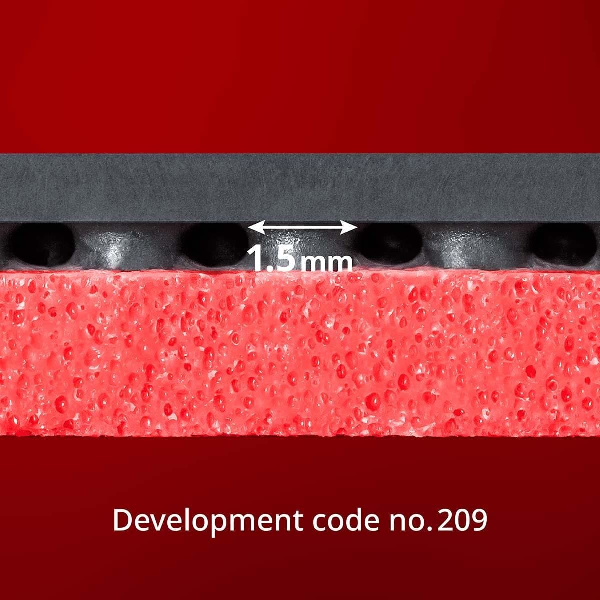 由于采用了可以发挥粘性套胶特长的独自研发的胶皮和稍硬的 Spring Sponge X 所起到了相乘效果,因此不但大幅度提高了 High Tension 的特性,并且实现了高水准的粘性和弹性的兼备。开发编号为 No.209 的颗粒形状是更易击出旋转强的弧圈、下旋、台内以及反拉等技术的运用。增强了粘性 High Tension 特长的 DIGNICS 09C,可以引领追求粘性胶皮击球感的选手发挥出更高水准。
