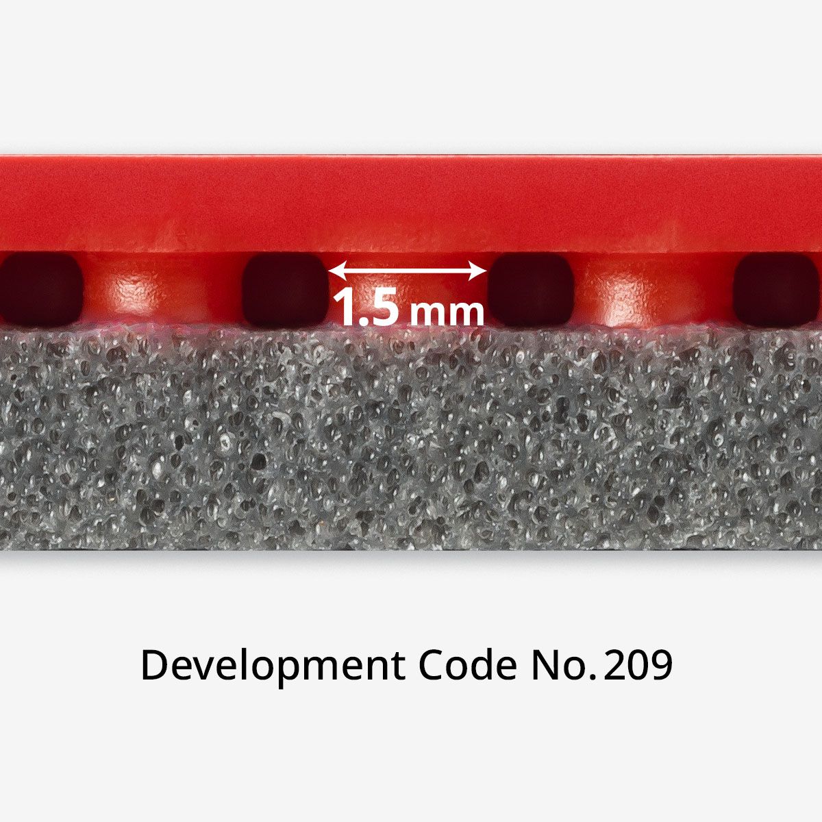 采用了灰色的 Spring Sponge X 海绵的 GLAYZER 09C 套胶。将具有 High Tension 效果的粘性胶皮,与硬度为42度的 Spring Sponge X 海绵相结合。不但实现了可以击出极具威力且丰富旋转的击球,以及台内技术的高水准灵活运用,而且出球弧线也更加趋于稳定。是一款可以体验到高性能粘性套胶所特有的重视旋转的弧圈球以及近台反拉的乐趣的套胶,推荐给更广泛的选手使用。