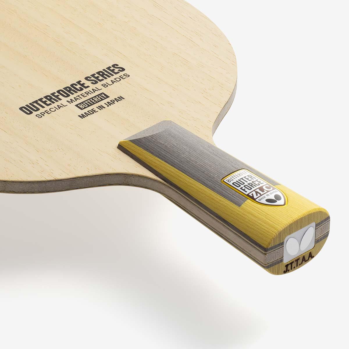 适度控制弹性,以易于上手为重点而设计的外置纤维结构底板。其特点为兼顾出球速度和稳定性,使得各种技术的运用更加灵活自如。在保持稳定的基础上,配合以高反弹力和高强度著称的ZLC纤维,即使退到中台也能打出强劲击球。