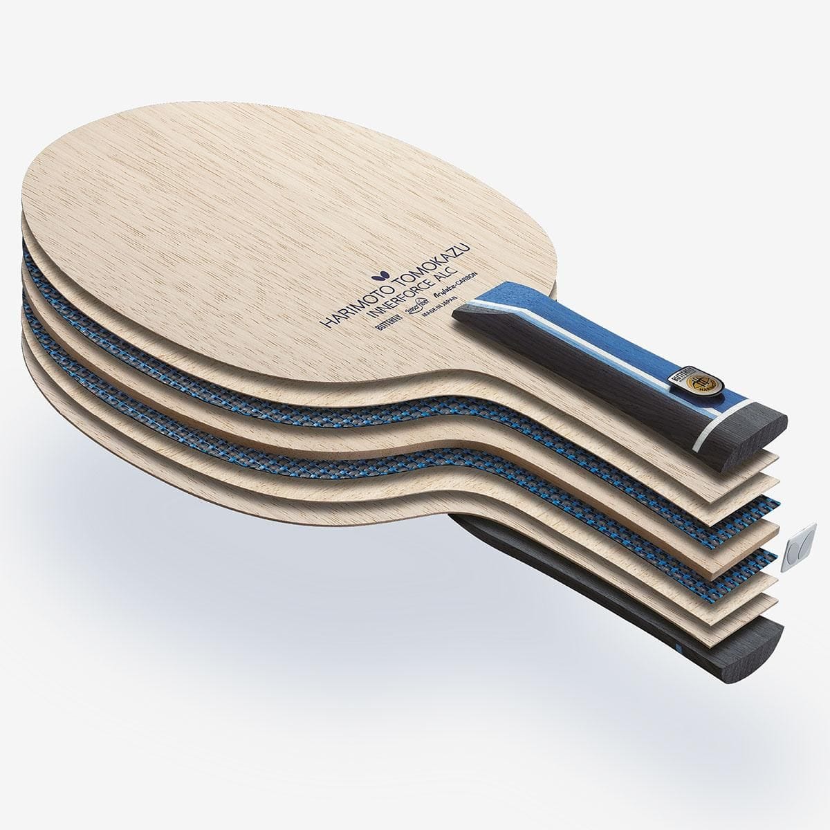 以 INNERFORCE LAYER ALC 所特有的「抓住球的感觉」以及适当弹性的特点为基础,采用在板面尺寸方面稍微加大的设计。是一款可以支持近台两面攻击性打法的底板。