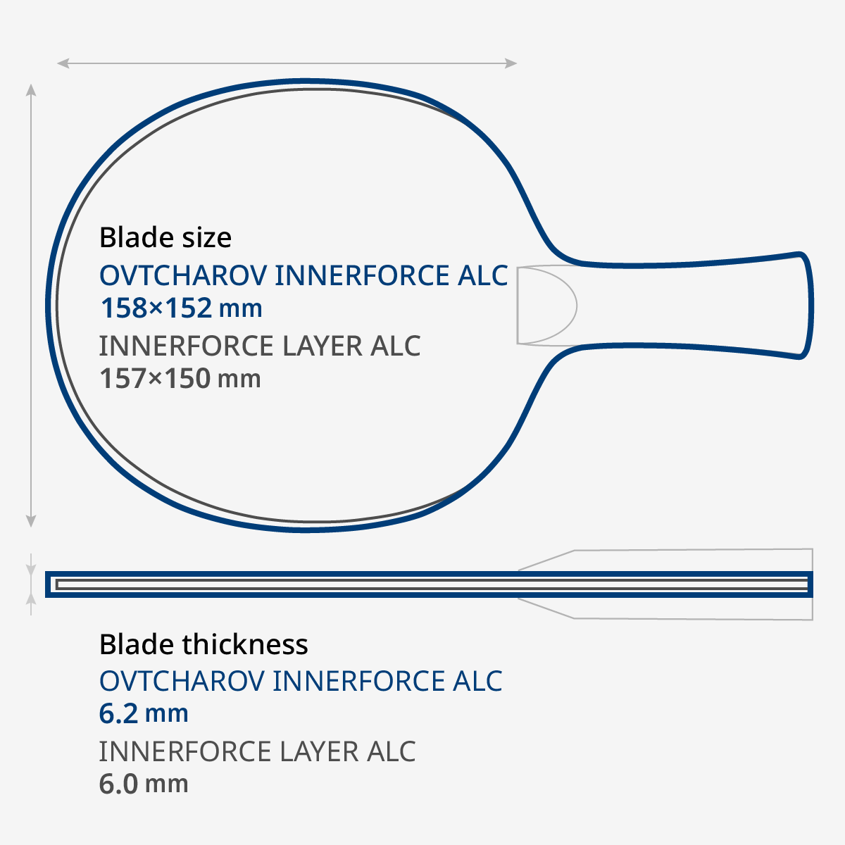 与德国队人气选手奥恰洛夫共同开发的底板。这款底板相较于 INNERFORCE LAYER ALC 更厚,板面尺寸也要更宽。这款在内置纤维结构的底板中具有很强的反弹特性,带来强劲的击球威力。