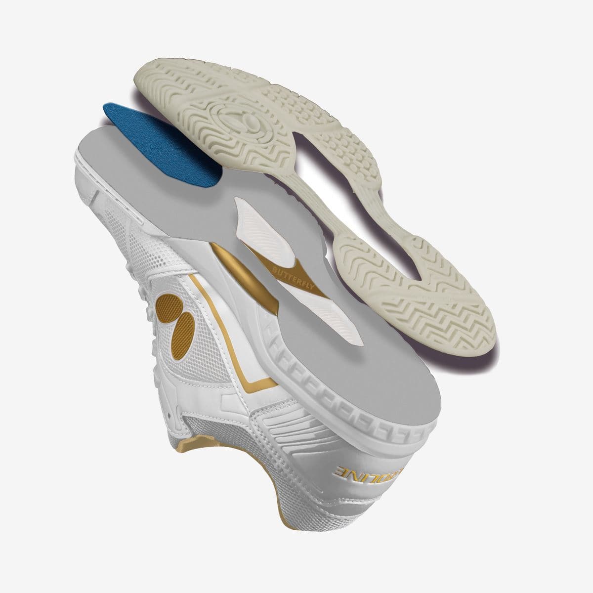 B-Armor:在前部外底和中底之间配置特殊海绵,使其兼具缓冲性和柔软性。在吸收冲击的同时,提供适当反弹力,完美匹配乒乓球运动所特有的,弹簧般的动作特性。