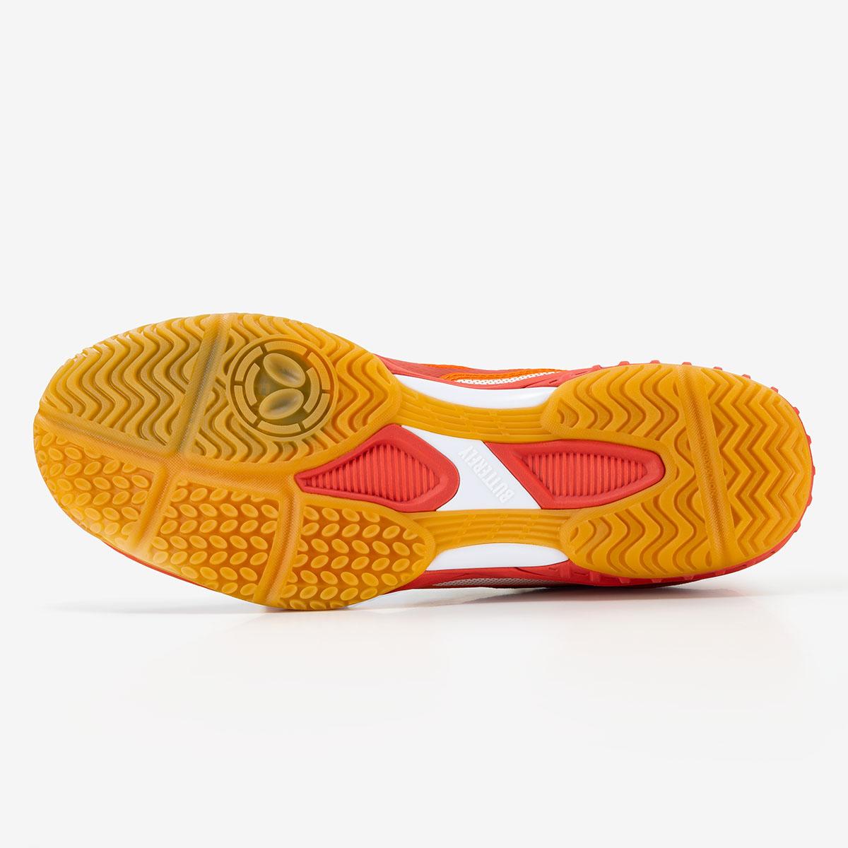 B-Absorber:在前部外底和中底之间配置特殊海绵,使其兼具缓冲性和柔软性。在吸收冲击的同时,提供适当反弹力,完美匹配乒乓球运动所特有的,弹簧般的动作特性。