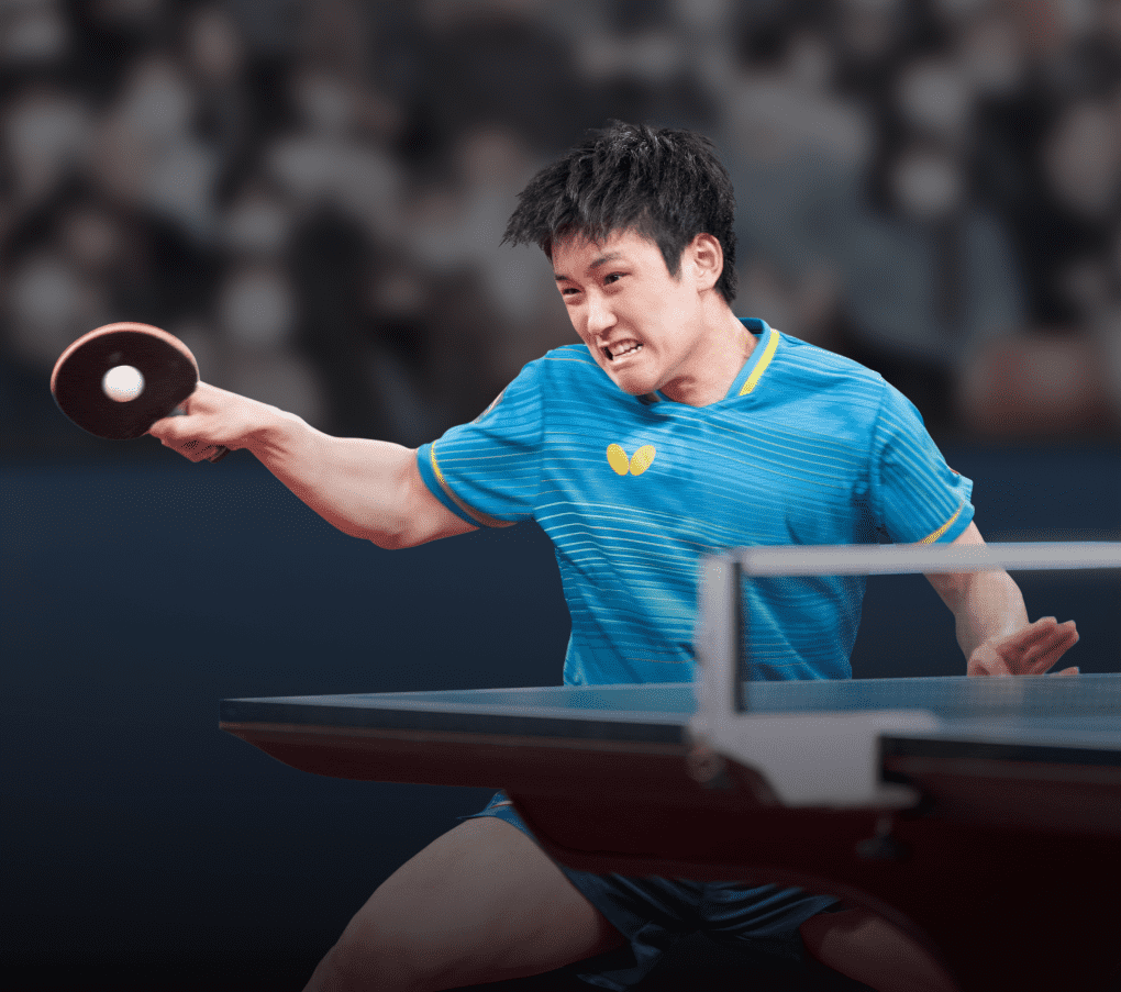 手柄上闪耀着的金色的标识里,刻有弓箭图案的符号。它源自于“张”字中的“弓”,象征着张本家族同心协力,攀登巅峰的姿态。兄妹间切磋琢磨,互相激励,父母为之全力倾注,为其运动生涯保驾护航。每当站在激烈的赛场,愿此符号化身为家人的坚定支持,为选手带来无尽的精神力量。