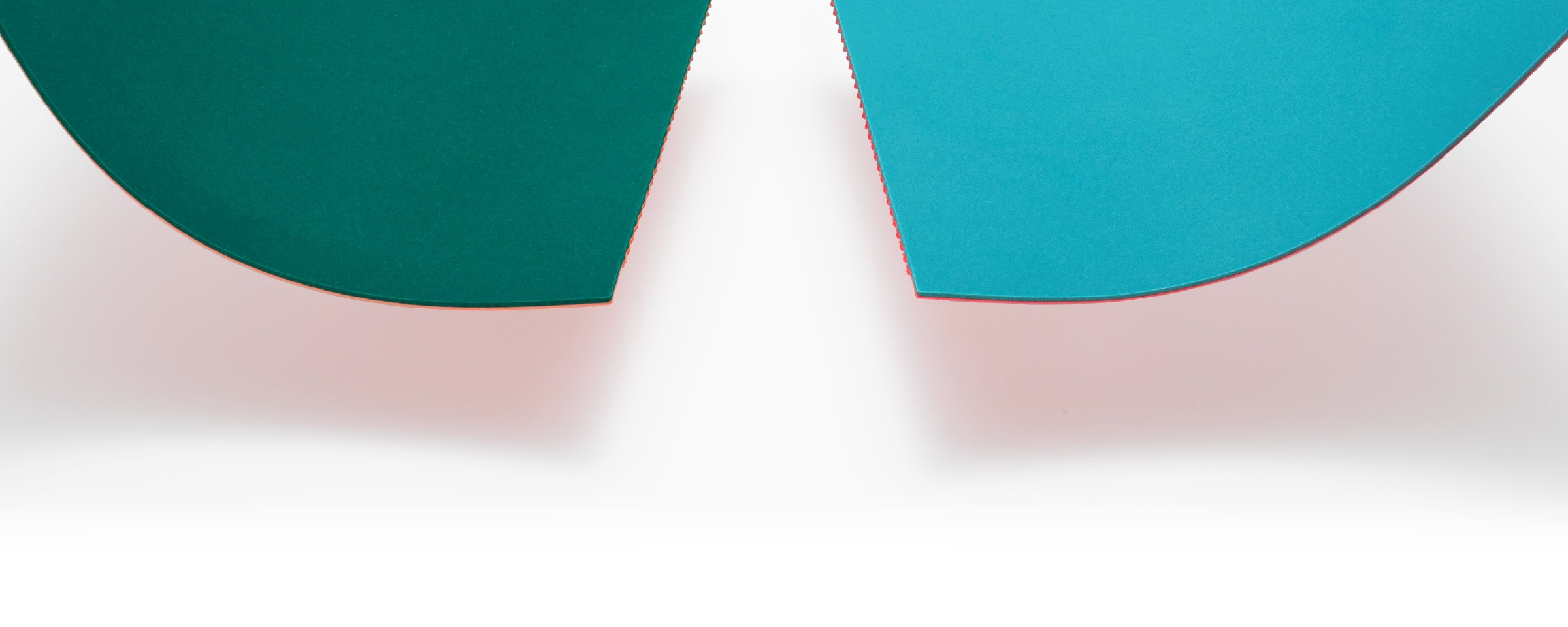 蝴蝶开发了不少像 SPRING SPONGE 那样,有利于进化进攻型打法的海绵。从这些经验中得出,一款好的海绵在套胶的性能上也能助一臂之力,所以开发 ILIUS 系列时,不只要在颗粒胶皮上做很多功课,在开发新海绵时也花了不少精力。所以 ILIUS S 采用了祖母绿的 ABSORBER SPONGE HEAVY 海绵,而 ILIUS B 则采用了松石绿的 ABSORBER SPONGE DROP 海绵。